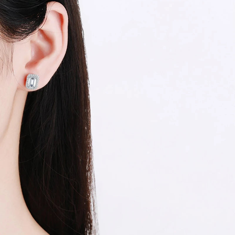 0.5-2 CT VVS1 D Emerald Radiant Cut Stud Earrings
